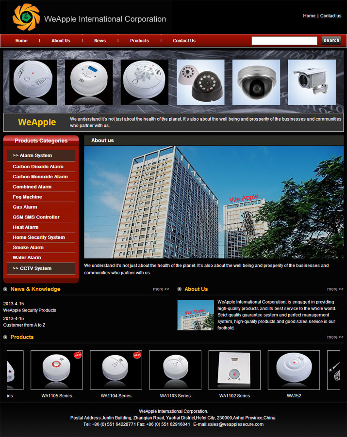 WeApple International Corporation, is engaged in providing high-quality products and its best service to the whole world. Strict quality guarantee system and perfect management system, high-quality products and good sales service is our foothold. "quality first, reputation first" is our principle. Our main operations are security solutions including safety alarm systems, CCTV monitor systems, smart home systems and automobile products. Our expanded services are including products searching, quality checking, logistic organization,business meeting and trip schedule arrangement etc.