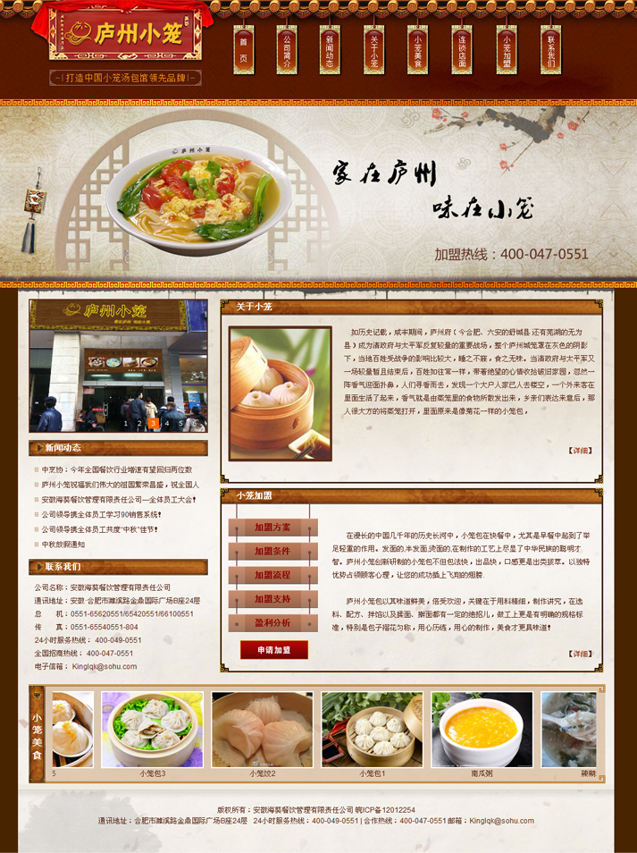 根據現行餐飲市場細分和消費方式變化需求,公司在全國率先依托團隊成功管理經驗和獨有產品開發技術,獨創了“廬州小籠”小籠包新時尚品牌,竭力關注現代都市“小資一族”的品位生活。品牌一經問世便獲得了食客們的認可,贏得廣大消費者喜愛和餐飲投資者的關注,并被廣大食客和業界同仁贊譽為“主題化、個性化、情調化、特色的時尚快餐品牌”!